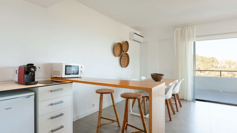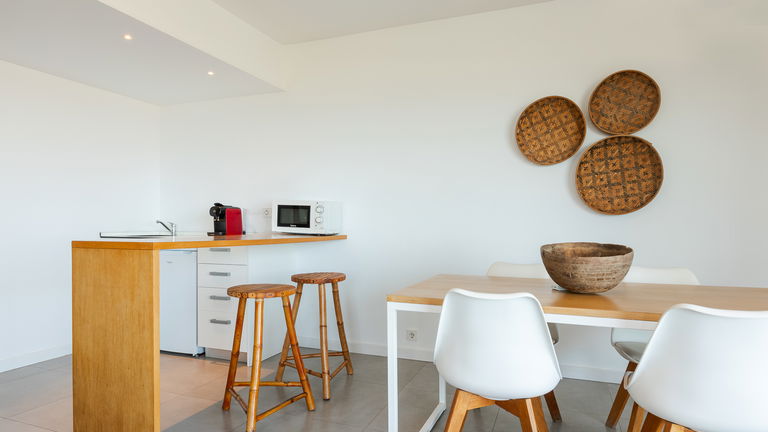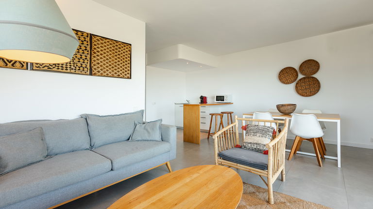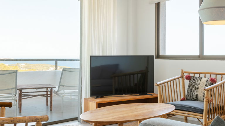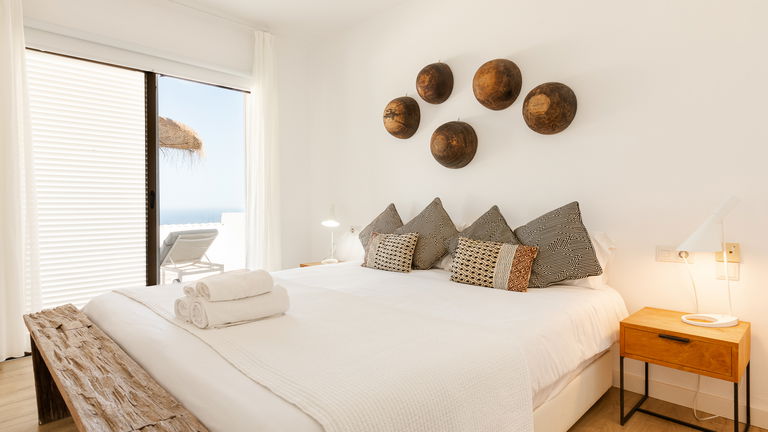 Our Junior Suite Vista Mar offers a larger and more comfortable space for your stay, with a separate living room and bedroom. Includes: